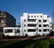 Insgesamt umfasst die Wohnanlage 18 Eigentumswohnungen, 3 Einzelgaragen und 34 Stellplätze in einer Tiefgarage. Der stark skulptural ausgebildete Baukörper gruppiert sich um einen privaten Innenhof, der im Erdgeschoss von einem Arkadengang eingefasst wird. Ein Pflanzbeet mit vorgelagerten Sitzstufen sowie einer hochstämmigen Kiefer, markieren den Treffpunkt für die Hausbewohner. Alle Wohnungen sind individuell geplant und besitzen ihren eigenen Charakter. Es gibt Maisonette Wohnungen über zwei Etagen mit eigenen separaten Zugängen von Außen und dazugehörenden privaten Innenhöfen, barrierefreie 3-5 Zimmer Geschosswohnungen mit großzügigen Loggien erschlossen über ein gemeinsames Treppenhaus, sowie zwei großzügige Penthouse-Wohnungen mit umlaufenden Dachterrassen.